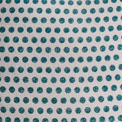 Series Features:Block printed dot design in teal and white. Solid reverse in white. Knife edge construction. Cotton cover. Zipper closure. Fiber filled. Machine washable.