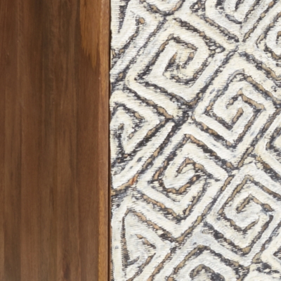 Series Features:Accent cabinet. Constructed of solid and engineered woods in natural, black and ivory finishes. Black finished metal hardware. Geometric pattern carved door fronts. 3 doors and 3 shelves. Cutout at back for electronics.